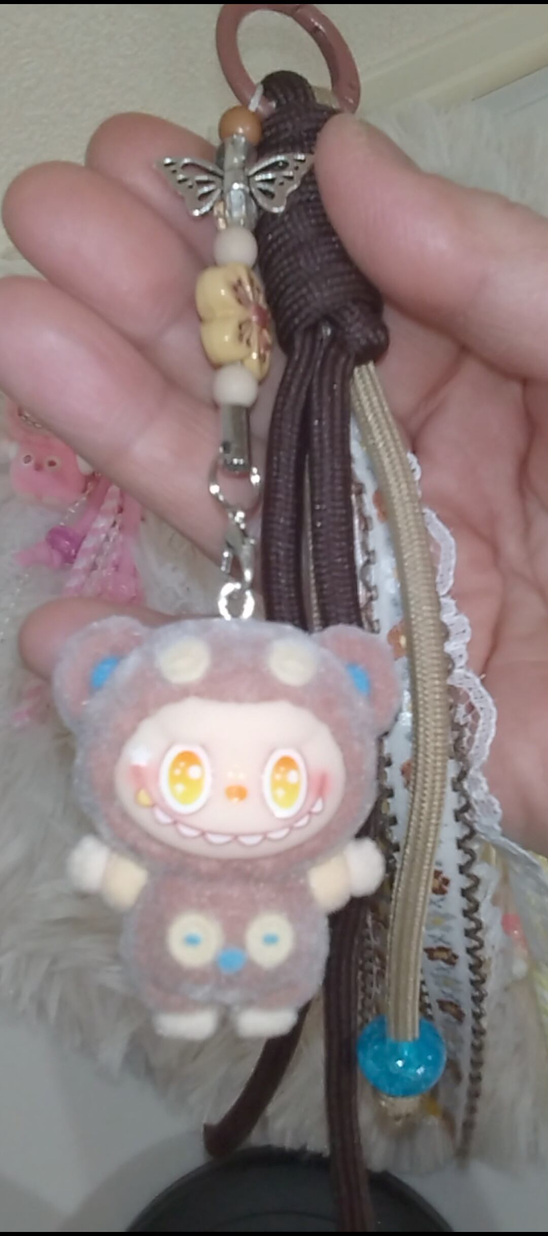 ボタンぶぶロープリボンストラップ▪️バックチャームで、日常に特別な愛を加えてみませんか?お問い合わせはショップのお問い合わせからお気軽にどうぞ。